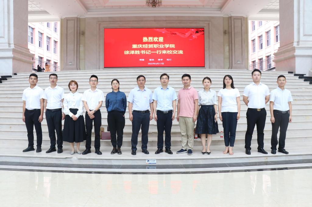6月17日上午,重庆经贸职业学院党委书记徐泽胜,率党委职能部门、二级党组织负责人代表一行10人来我校交流。学校党委书记张毅、学校党委职能部门、二级党组织负责人代表参加了交流座谈会。
