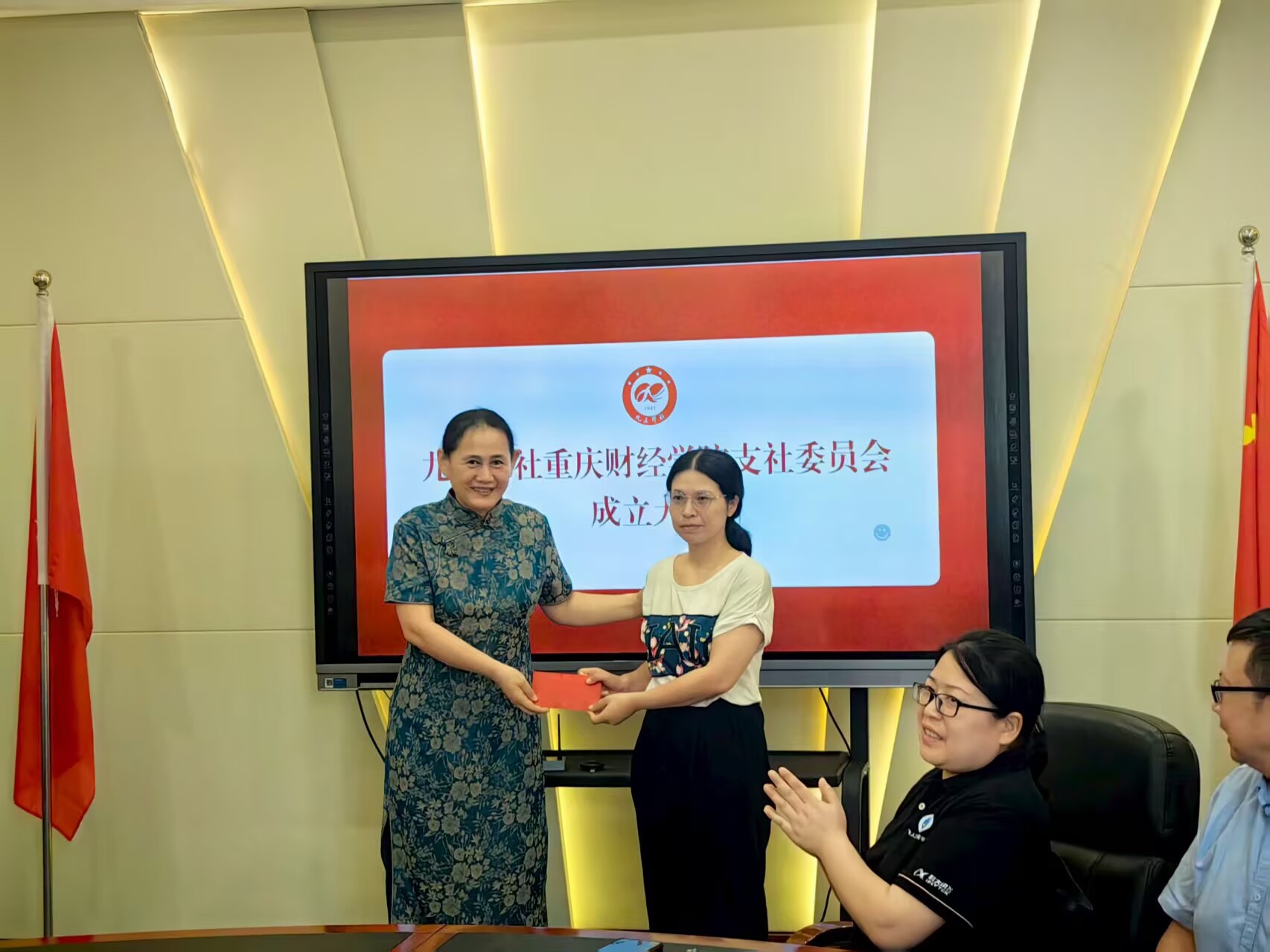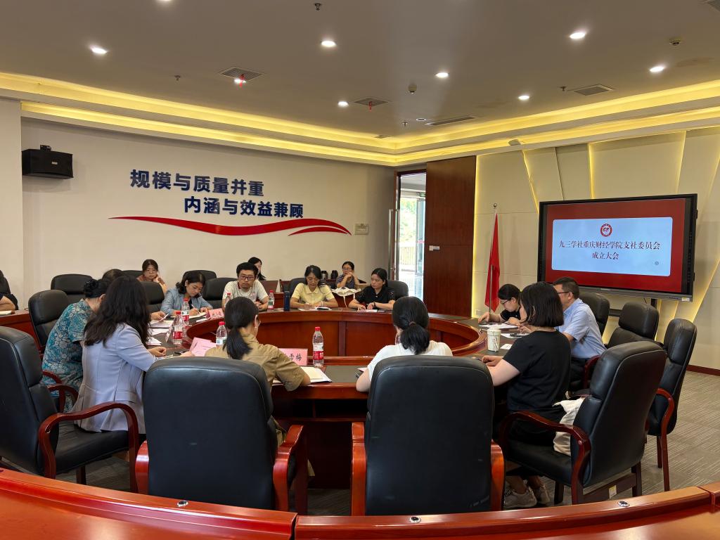 9月18日,九三学社重庆财经学院支社成立大会在学校2302会议室隆重举行,九三学社巴南区工委专职副主委姚小娟主持会议,学校全体九三学社教职工参加会议。巴南区政协副主席、九三学社巴南区工委主委刘秀荣,校党委书记张毅,党委副书记、统战部长房朝君,统战部常务副部长甘雪梅列席会议。会议成立了学校首个民主党派基层组织,选举产生了首届支社委员会,对学校更好地凝聚民主党派成员的力量、发挥党外人士优势和智慧、推动学校建设和发展贡献更多力量。