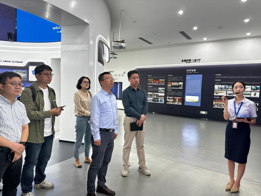 代表团抵达后,首先参观了中国汽研企业展厅。通过专业讲解和丰富的展示,详细了解了中国汽研的发展历程、核心业务布局、技术研发成果及在汽车工程技术、检测认证等领域的行业贡献,为后续教学实习实训基地拓展积累了实地认知。随后,双方在会议室举行座谈交流。中国汽研总经理刘安民、人力资源部部长郑潇潇、办公室副主任秦振华、科技创新部副部长葛晓成等主要负责人出席。
