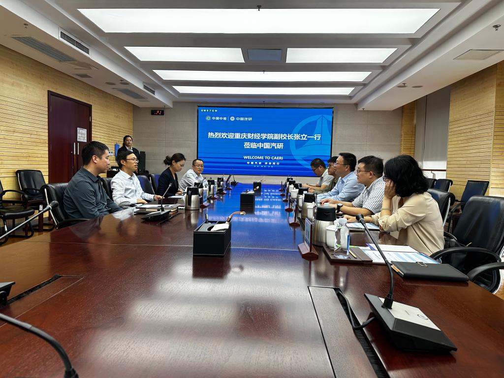 为深化产教融合,加强校企合作,共同探索高素质应用型人才培养与科技创新合作新路径,2025 年 10 月 13 日下午,重庆财经学院副校长张立率代表团一行,应邀前往中国汽车工程研究院股份有限公司(以下简称“中国汽研”)进行考察交流。