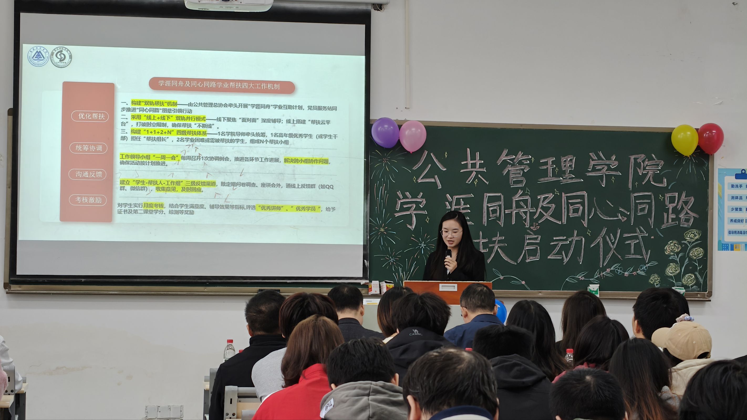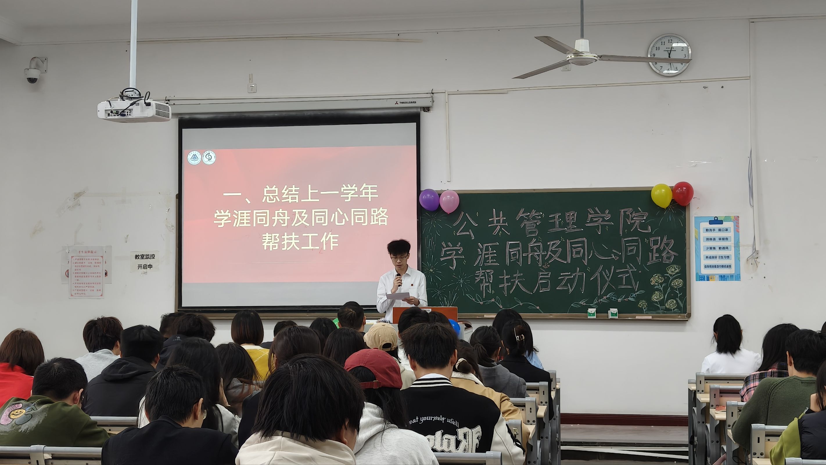 回顾过往,总结经验明方向。启动仪式上,刘佳俊同学全面总结上一学年帮扶工作。学院创新构建“双轨帮扶”机制,公共管理总协会牵头“学涯同舟”学业互助,党员服务站推进“同心同路”朋辈引领。通过定期学习交流、一对一帮扶等举措,积累了宝贵经验,培育出优秀学生榜样,成效显著。不仅助力多名学业困难学生提升成绩,还营造了互帮互助的学习氛围。此次总结为后续工作优化指明方向,如增强帮扶的针对性与个性化。