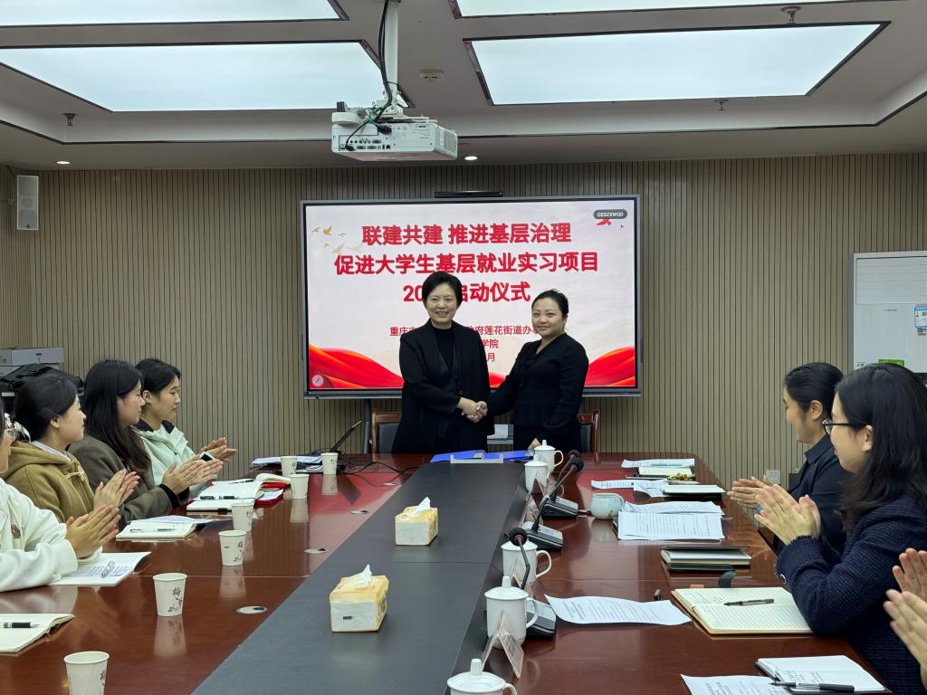 为深化落实国家关于引导高校毕业生服务基层的决策部署,2025年11月10日,重庆财经学院与巴南区莲花街道共同举办第二届“联建共建推进基层治理”大学生基层就业实习项目启动仪式。校党委副书记房朝君带队,党群工作部、校团委及软件学院相关负责人与19名实习生参与活动。莲花街道党工委书记刁维娜、组织委员白秀英及所辖村(社区)书记等共同出席。