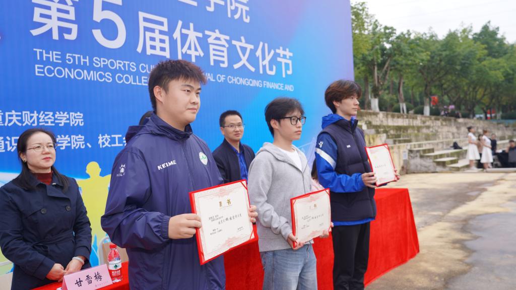 开幕式上还举行了体育文化校园宣传大使聘书颁发仪式。罗科艺、谷炳圻、赵博三位同学凭借在武术、足球等领域的优异表现获此殊荣。其中,罗科艺曾斩获中国大学生武术比赛第五名,谷炳圻、赵博成功入选渝超联赛相关球队,他们用实际行动诠释了文体并进的青春担当,为全校学子树立了榜样。