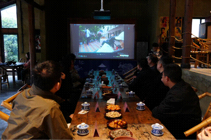 归原小镇民宿街作为本次调研的核心站点,团队与仙女山街道党工委副书记、办事处主任李鹏程就文旅宣传推广工作深入沟通。双方共同观看了重庆财经学院新媒体艺术节宣传片与仙女山街道宣传片,围绕地方文化传播、新媒体宣传创新等内容展开热烈探讨。