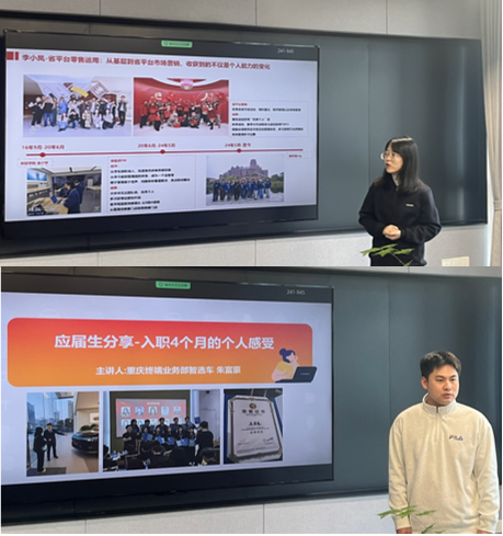 随后,我校2020届会计专业毕业生李小凤、2025届电子商务专业毕业生朱富豪作为公司员工代表分享感悟。李小凤讲述了从职场新人成长为业务骨干的历程,感谢公司培训晋升支持与母校教育基础;朱富豪分享了新入职适应情况与岗位体验,认可公司工作氛围与发展机遇。两人的分享为在校学子提供了就业参考,也印证了我校人才培养与企业需求的精准契合。