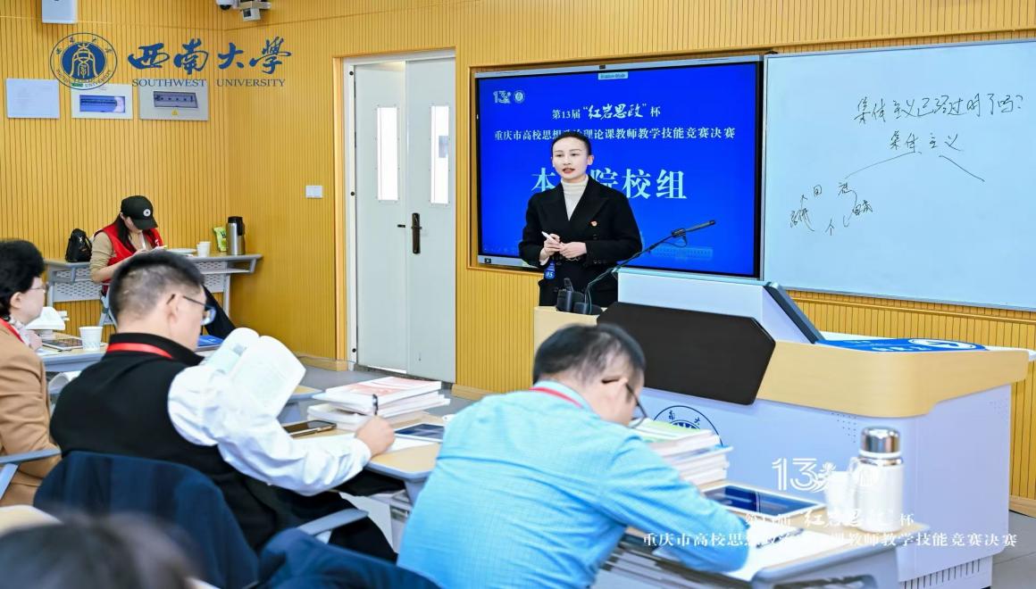 作为重庆市提升高校思政课教学质量、锤炼教师队伍的核心平台,此次“红岩思政”杯竞赛汇聚全市各高校优秀思政课教师同台竞技。我校高度重视此次赛事,通过“全员展示筛选+校外专家评审指导”的两轮校级选拔优中选优,确定参赛人选晋级市级复赛;两位老师在市级复赛中脱颖而出后,继续深耕细研、打磨教学,最终成功闯入市级决赛并荣获二等奖。备赛全程,两位老师充分展现了我校思政课教师过硬的专业素养。