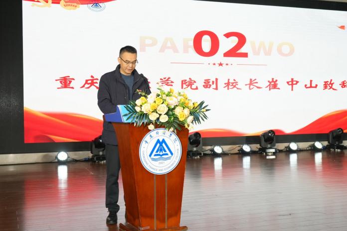 闭幕式伊始,重庆财经学院副校长崔中山发表致辞。他指出,思政课是落实立德树人根本任务的关键课程,学校连续十三年举办该系列活动,是对标中央部署、响应时代号召的生动实践,将党的创新理论、红色文化资源与“新财经”特色融合,为培养“五优”财经人才筑牢思想根基。过去一年,该校在思政教育领域成果丰硕,学生作品获教育部相关比赛优秀奖、全国红色旅游学生创意策划大赛特等奖等,教师在市级思政课教学技能竞赛中获奖,“会帮帮”大学生志愿服务队获中宣部表彰,这些均是校地合作、“党建引领一院一镇街”结对共建的育人成果。