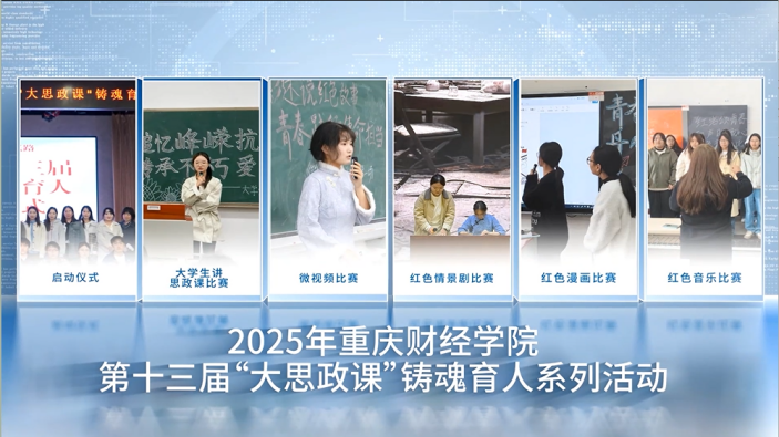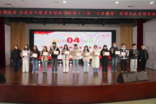 为总结思政育人成果,深化红色基因传承,推动大中小学思政课一体化建设走深走实,12月4日上午,重庆财经学院第十三届“大思政课”铸魂育人系列活动闭幕式在学术报告厅隆重举行。本次活动由重庆财经学院马克思主义学院、党委宣传部、共青团重庆财经学院委员会、公共管理学院、新媒体艺术学院联合主办,公共管理学院团总支、学生会与新媒体艺术学院团总支、学生会共同承办。