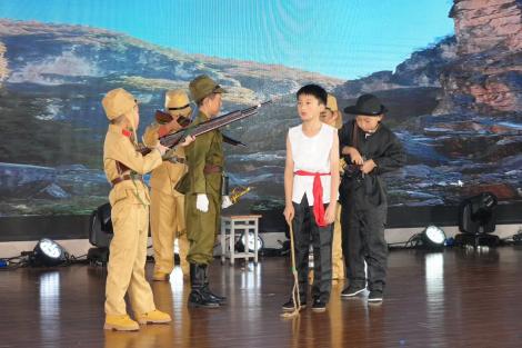 闭幕式的重要环节——巴南区大中小学同演一台红色情景剧精彩上演。小学组以“烽火岁月小英雄,童心向阳筑梦想”为主题,用稚嫩却坚定的表演再现了少年英雄王二小的爱国情怀;中学组围绕“传承抗战精神,共筑复兴梦想”,通过真挚的情感表达诠释了新时代青少年对革命精神的理解;大学组以“演绎红色经典,传承革命基因”为核心,将红岩精神与青春担当融为一体,展现了青年学子的理想信念。三个学段的师生以艺术为桥,跨越年龄界限传递红色力量,生动呈现了大中小学思政课一体化建设的丰硕成果,让现场观众深刻感受到红色基因在代代相传中焕发的鲜活生命力。