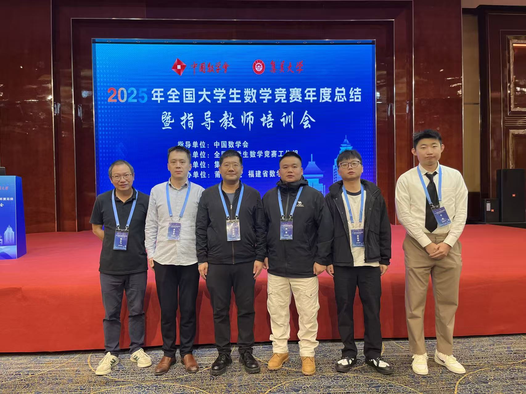 为深入推进“强师工程”建设,学习借鉴各类高校在大学数学课程建设、分类分层课程改革、以赛促学、以赛促教等方面积累的宝贵经验和成功做法,提升教师的数学竞赛专业技能,2025年12月5日-7日,我校通识教育学院大学数学教研室6名教师赴厦门参加2025年全国大学生数学竞赛指导教师培训会。