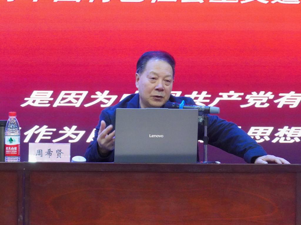 周希贤教授以“中国共产党的指导思想”为主题,深入阐述马克思列宁主义、毛泽东思想、邓小平理论、“三个代表”重要思想、科学发展观以及习近平新时代中国特色社会主义思想等核心内容,结合党的二十大提出的“十个明确”“十四个坚持”“十三个方面的成就”等内容,对党的二十大精神进行全方位、深层次的解读,并寄语学员争取早日成为可堪大用、能担重任的栋梁之才。
