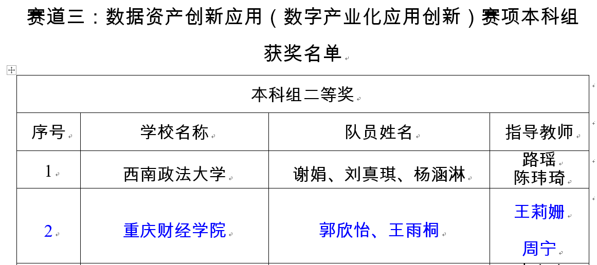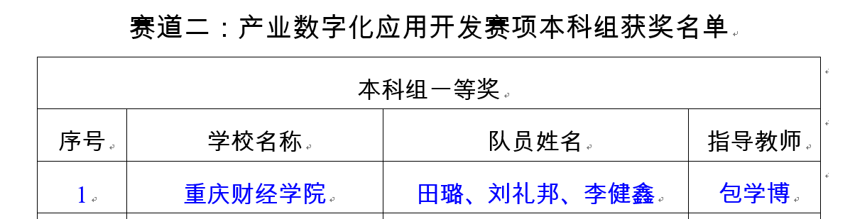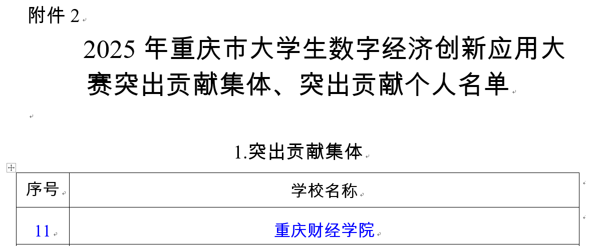 近日,重庆市教育委员会正式发布《关于2025年重庆市大学生数字经济创新应用大赛获奖情况的通报》。在本届大赛中,重庆财经学院代表队与来自全市32所高校的198支队伍同台竞技,表现卓越,最终斩获一等奖2项、二等奖1项、三等奖4项的优异成绩。同时,我校荣获“突出贡献集体”称号,包学博、李康、刘春兰、李星林等10位教师被评为“突出贡献个人”,充分彰显了我校在数字经济人才培养与产教融合领域的雄厚实力和丰硕成果。