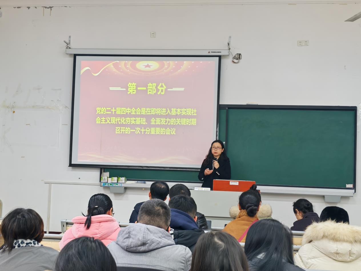 按照市委教育工委统一部署及学校党委工作安排,学校学习贯彻党的二十届四中全会精神宣讲工作持续深入推进。1223日下午,党委副书记房朝君在1320教室为物流工程学院(国际商学院)党总支全体党员及教职工作专题宣讲报告。
