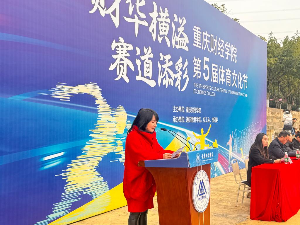 随后,李春雷副校长致闭幕辞。他首先代表学校向为本届体育文化节成功举办付出辛勤劳动的全体裁判员、工作人员、志愿者,以及积极参与的全体师生表示衷心感谢。李春雷指出,本届体育文化节不仅是学校贯彻“五育并举”教育方针、深化体育教学改革的重要体现,更是展示重财学子昂扬精神风貌、增强集体荣誉感与凝聚力的盛大舞台。赛事期间,同学们在赛场上挥洒汗水、奋力拼搏,展现了出色的运动技能、良好的体育道德和坚韧的意志品质,真正赛出了风格、赛出了水平。他希望全校师生能将体育文化节中激发出的团结协作、勇于争先、永不言败的精神,转化为学习和工作的强大动力,以更加饱满的热情和强健的体魄,共同推动学校各项事业蓬勃发展。