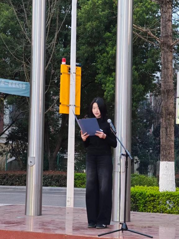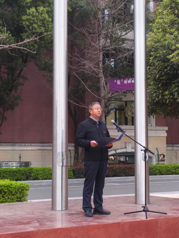 来自物流工程学院2024级的赖科宇同学作为学生代表发言。他结合2026年是长征胜利90周年、建党105周年及“十五五”开局之年,号召同学们铭记历史、勇担使命。他提到,2026年也是学校迎来本科教学工作合格评估的关键之年,全体同学要以“迎评促建创一流,骐骥驰骋开新局”为目标,守住勤学笃行的初心,树立修身立德的本心,怀揣向阳而生的热忱,在校园的点滴中锤炼自我、奋发向上。