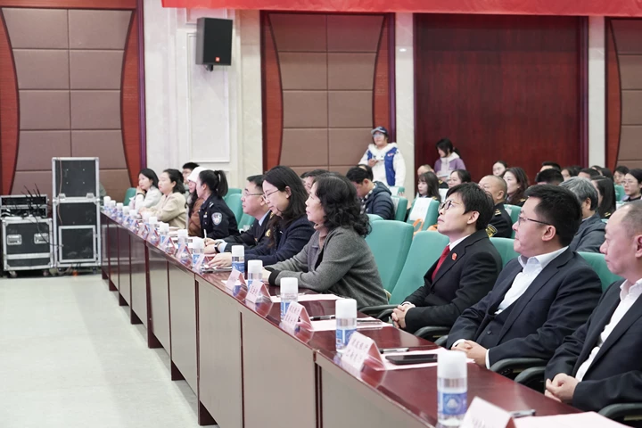 房朝君书记在致辞中指出,今年“3·15”的主题是“提升消费品质”,本次竞赛紧扣这一主题,以“提升消费品质,共筑诚信生态”为宗旨,既是知识竞技的赛场,更是一堂面向青年的沉浸式思政课与法治课。她分享了三点真切感受:一是这是一场知行合一的法治实践,同学们在深耕消费维权法律知识中展现了崇尚法治、维护公平的初心;二是这是一次多方联动的育人典范,构建起政府主导、学校主抓、社会协同、青年参与的育人格局;三是这是一份提振信心的时代宣言,青年学子在赛场上的从容自信,让我们看到了新时代青年的朝气与担当。她勉励同学们以此次活动为契机,坚守诚信立身之本,筑牢法治思维底线,并强调学校将持续深化校地合作,丰富法治诚信教育形式,培养更多有理想、敢担当、守诚信、懂法治的新时代青年。
