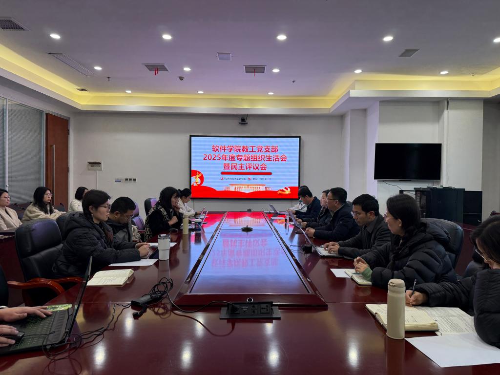 为深入学习贯彻党的二十大和二十届四中全会精神,按照上级党组织统一部署,2026年3月17日下午,软件学院教工党支部在2303会议室召开2025年度专题组织生活会暨开展民主评议党员工作。校党委委员、副校长张立列席指导,软件学院党总支副书记刘有沛及支部全体党员参加会议。