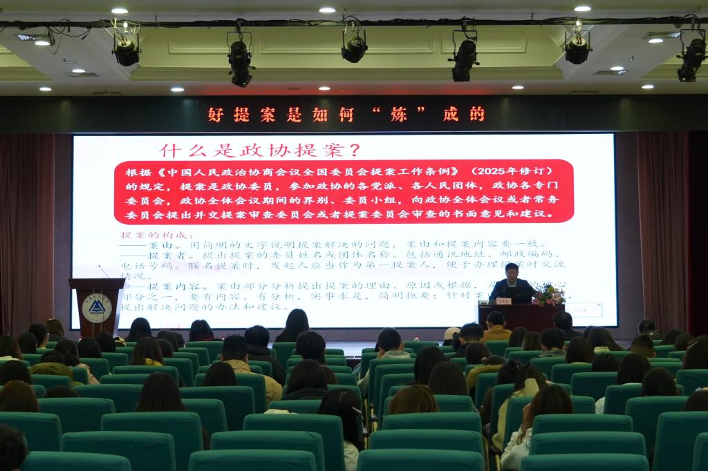 房朝君副书记在致辞中强调,提案撰写是链接专业知识与社会需求的重要桥梁,希望同学们以此次讲座为契机,练就提案撰写硬本领,提升参政议政意识和创新创业能力,成长为有担当、有本领的高素质应用型人才。
