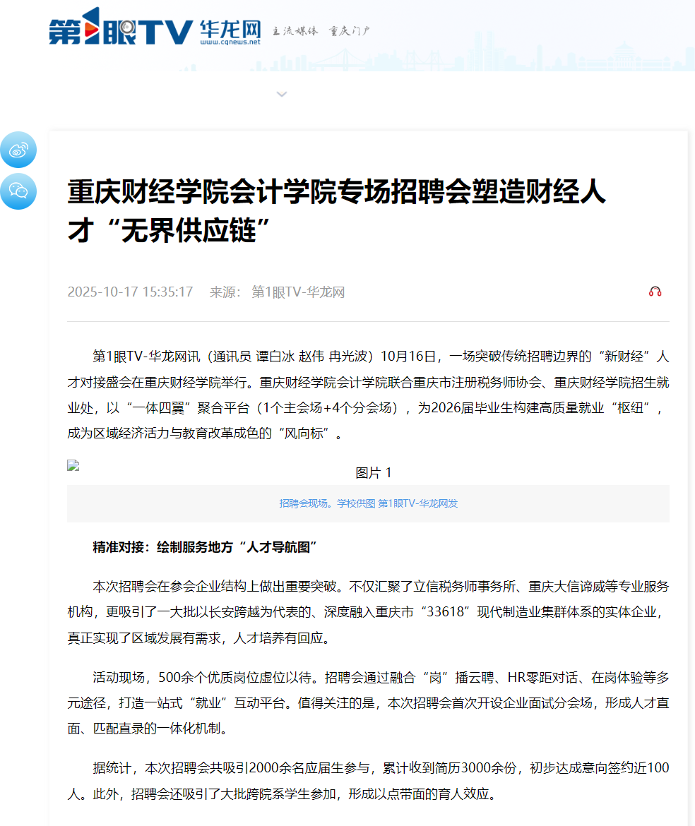 本次招聘会在参会企业结构上做出重要突破。不仅汇聚了立信税务师事务所、重庆大信谛威等专业服务机构,更吸引了一大批以长安跨越为代表的、深度融入重庆市“33618”现代制造业集群体系的实体企业,真正实现了区域发展有需求,人才培养有回应。