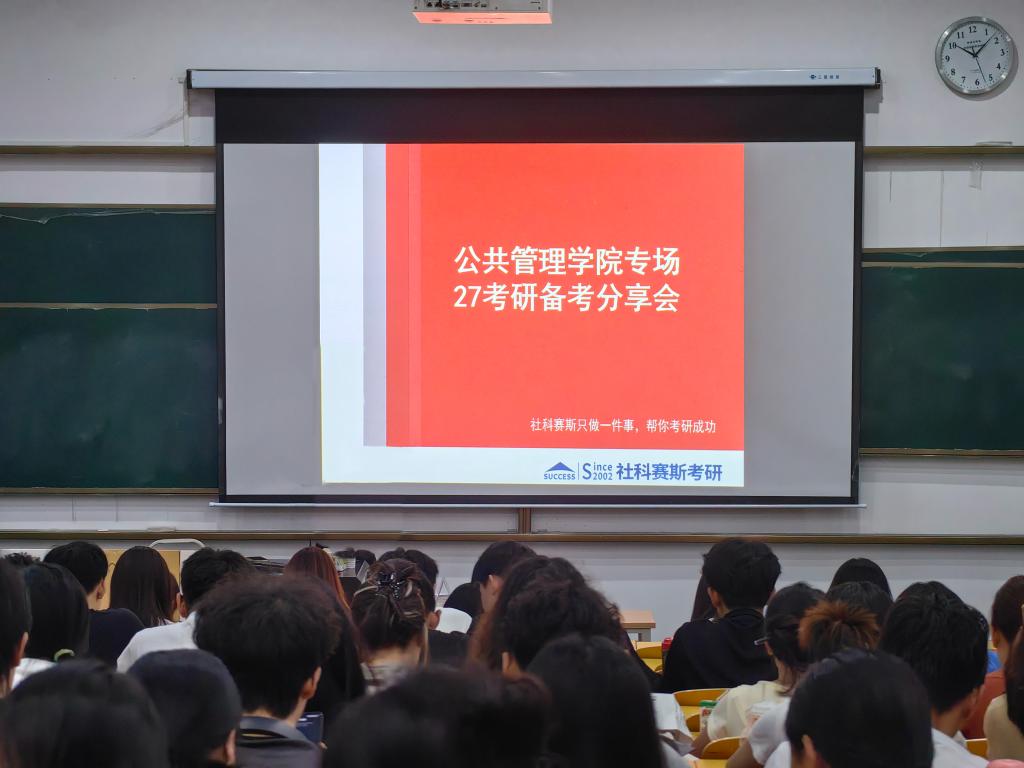 讲座由社科赛斯考研重庆分校校长金磊老师主讲,学院辅导员王春凤、王芹老师及2023级专升本各班学生代表、有考研意向的同学共同参与。金磊老师从近年专升本学生考研数据切入,系统分析当前考研政策与趋势,并结合公共管理相关专业特点,指导学生理性评估院校选择策略,避免盲目跟风或消极应对,强调“适合的才是最好的”。