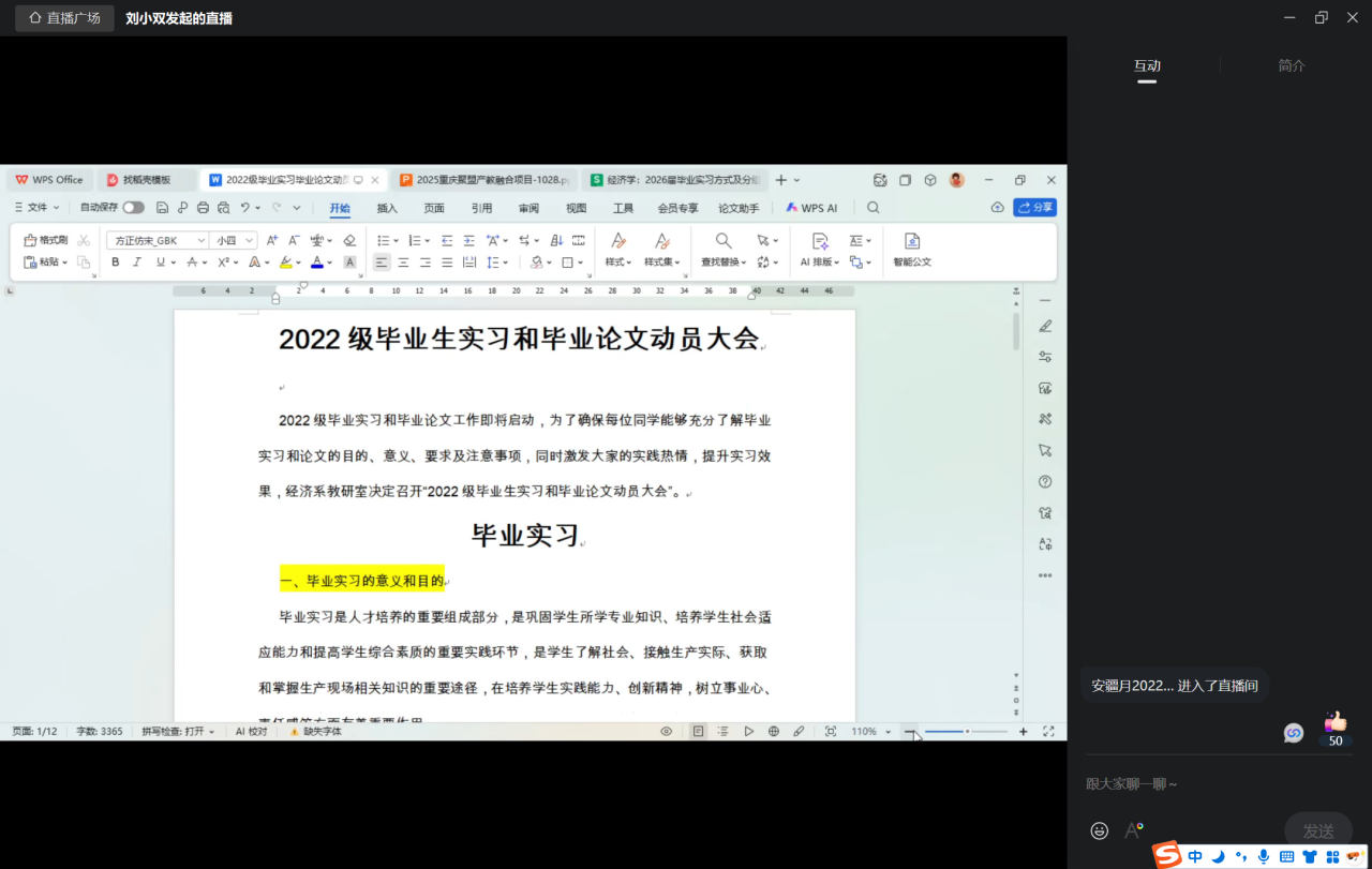 为助力2022级经济学与贸易经济专业学生准确把握毕业核心任务,切实解决其在实习与论文方面的困惑,10月28日上午,经济系负责人通过钉钉群直播成功开展毕业实习与论文专题启动会,会议由经济系负责人主任刘小双老师主讲,经济学和贸易经济专业全体学生参会。