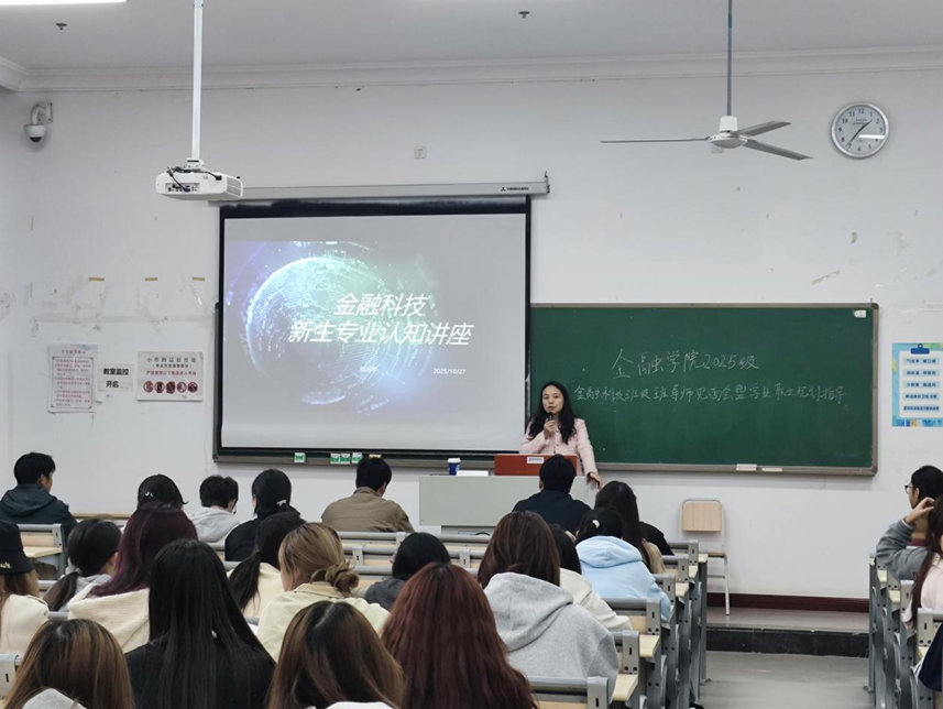 在数字经济新时代的浪潮中,金融科技已不再仅仅是金融体系的补充,而是驱动金融行业乃至整个经济社会向数字化、智能化跃迁的核心引擎。为帮助2025级新生深化对金融科技专业的理解、明晰发展方向、把握行业脉搏,10月27日下午13:30,由金融科技系主任晏鸿萃主讲的“金融科技专业认知讲座”在重庆财经学院教学楼1520教室顺利举行。本次讲座是新生认知教育系列活动的重要组成部分,金融科技专业辅导员李丹、专业教师黄文涛、卿天赐共同出席。