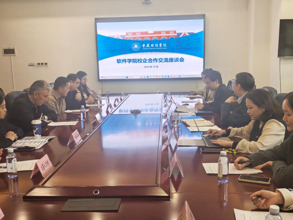 为深化产教融合,促进校企资源共享,搭建人才培养与产业需求对接的桥梁,10月24日,软件学院成功举办校企合作交流会。来自市内外18家知名软件企业的代表、重庆财经学院副校长李嘉明、软件学院副院长夏祥礼、软件学院副书记刘有沛,以及学院骨干教师齐聚一堂,围绕软件行业发展趋势、人才培养模式创新、实习就业合作等核心议题展开深入交流,共商合作发展大计。
