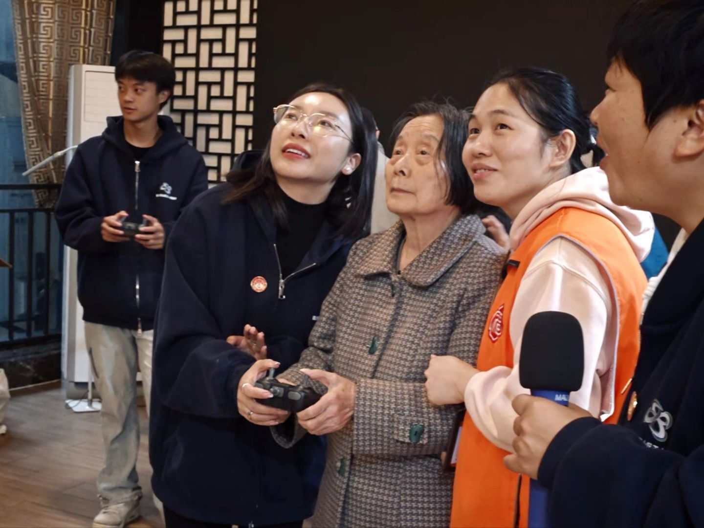 “青小志”就像他们的孩子一样贴心叮嘱秋冬保暖细节;在手工专区,志愿者轻声耐心地教学与老人一起完成手工折纸,一张张彩色的卡纸在他们手上翻飞,转眼就变成了栩栩如生的动物和娇艳的花朵;绘画桌上满是温暖的细节,志愿者手把手陪着老人调色,沾着颜料的画笔落下,一幅幅作品在纸上绽放。指尖的协作让老人们脸上漾开笑容,不少老人举着自己的作品,自豪地展示给身边人。