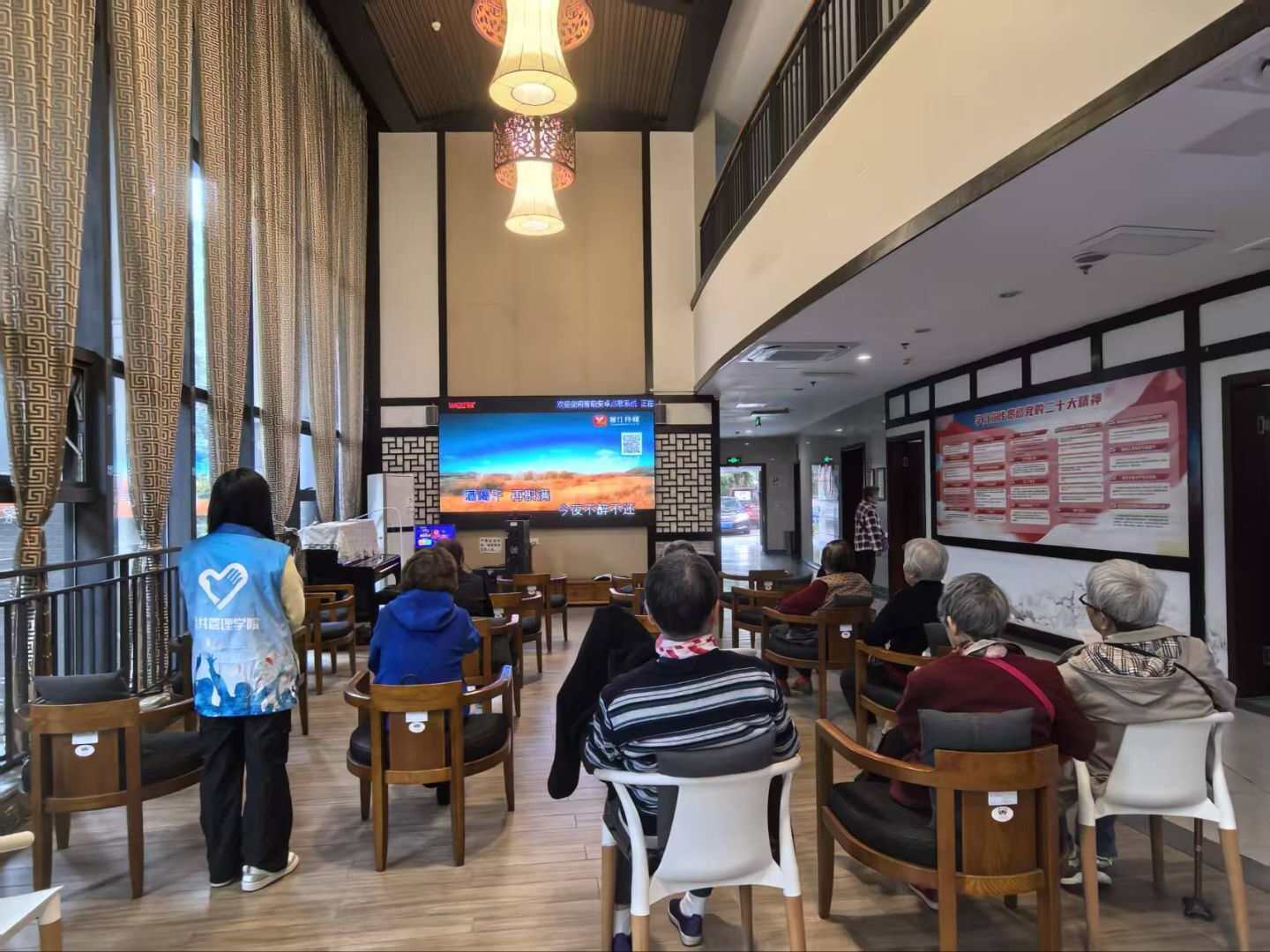 活动现场暖意融融,“青小志”们围绕老人需求,分工开展多元服务。在陪伴专区,志愿者们围坐老人身边,耐心倾听他们讲述岁月故事,从往昔生活谈到日常趣闻,笑声在房间里轻轻漾开;在健康知识讲解区,志愿者们结合专业知识为老人分享简易健康贴士。比如教老人做肩颈放松操,提醒日常饮食要低盐低糖。