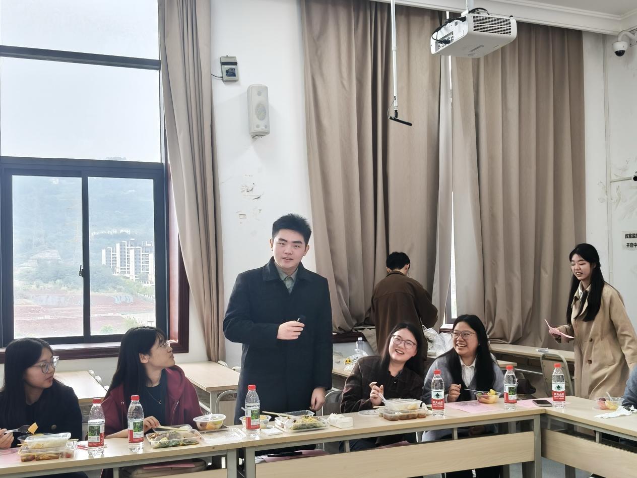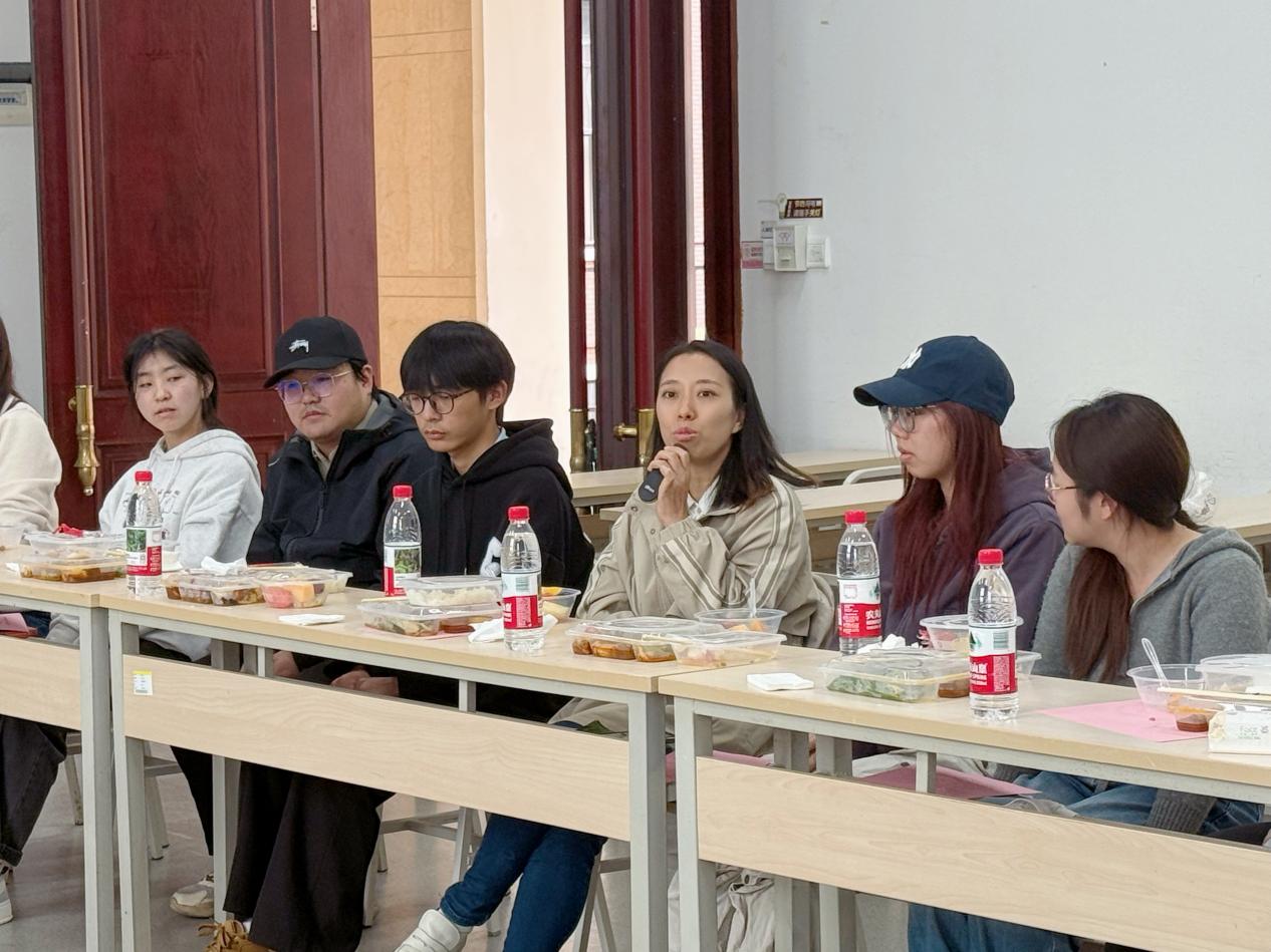 餐后的“规划分享”环节,一场趣味互动小游戏激活全场氛围。随后,学生代表们纷纷亮出个人“成长剧本”。有的同学细致分享考研目标院校的选择逻辑和备考时间规划,有的同学结合本次活动畅谈感悟,分享对大学生活与成长方向的全新认知,引发现场师生广泛共鸣…学生分享结束后,老师们针对大家提及的考研规划、方向抉择等核心问题,现场“支招”,句句干货,为学生成长路径提供实用指引。