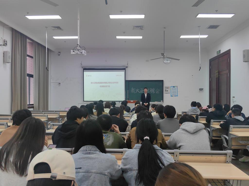 为助力2023级、2024级物业管理专业学生了解物业领域“新”发展、明确职业“新”规划,践行学校“个个有赛道,人人能出彩”育人理念,公共管理学院于2025年10月24日成功举办新大正物业集团宣讲会。活动特邀新大正物业集团航空事业部人事经理潘云峰主讲,2023级、2024级物业管理专业全体学生及就业专员王芹共同参与,为物业管理专业学子打通了解行业、对接岗位的关键通道。