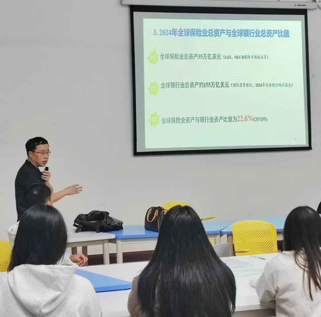 为助力2025级保险学新生深入了解专业、规划未来,金融学院于10月30日至11月3日精心组织了一系列新生认知教育活动。活动特邀保险学特聘专家王利、专业带头人陈志国教授、专业负责人付莹璇老师共同主讲,为新生带来了一场内容丰富、启迪深刻的专业入门课。
