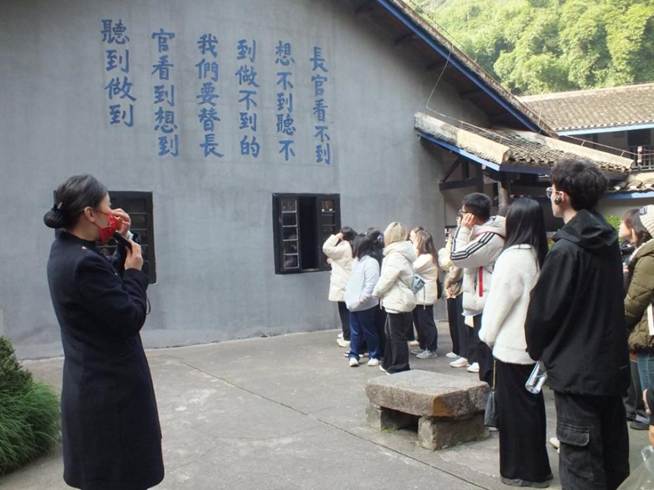 24级韦锦浠同学在参观后写道:“我走进了渣滓洞。寒意扑面而来,并非来自山风,而是来自历史的凝固。狭小的牢房,冰冷的铁窗,潮湿发霉的气味,一切都在无声地诉说着苦难的真实。我看到那件件被保留下来的旧棉衣,竹签书写的秘密文字,它们证明着:在生命被无限压缩的空间里,信仰的力量被无限放大。”