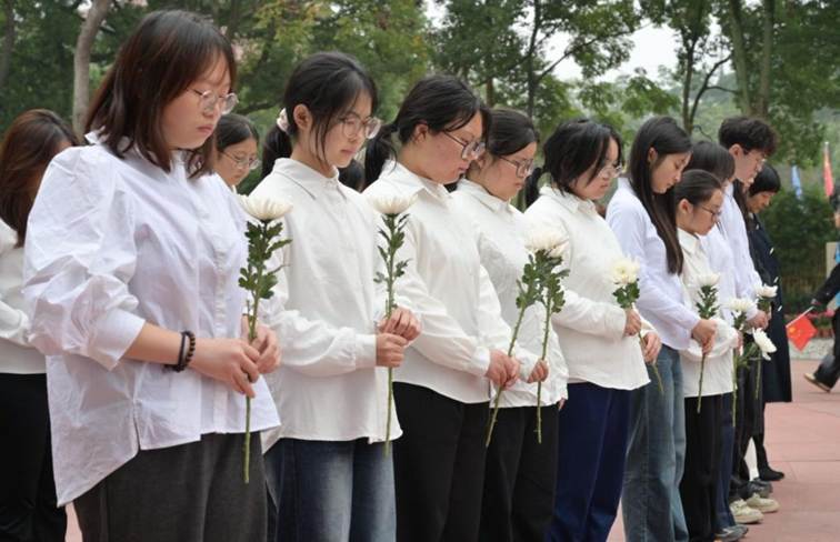 上午十点半,全体师生在红岩魂广场举行庄严肃穆的祭奠仪式。学生代表首先诵读悼词,随后深情讲述了江竹筠烈士的感人事迹。当讲到江姐在狱中写下“盼教以踏着父母之足迹,以建设新中国为志,为共产主义革命事业奋斗到底”的遗书时,师生们无不动容。随后,在肃穆的氛围中,全体师生为革命先烈默哀一分钟。默哀完毕后,师生们手持白菊,依次缓步上前,将鲜花郑重敬献于烈士墓前,并深深鞠躬,表达对革命英魂最崇高的敬意。