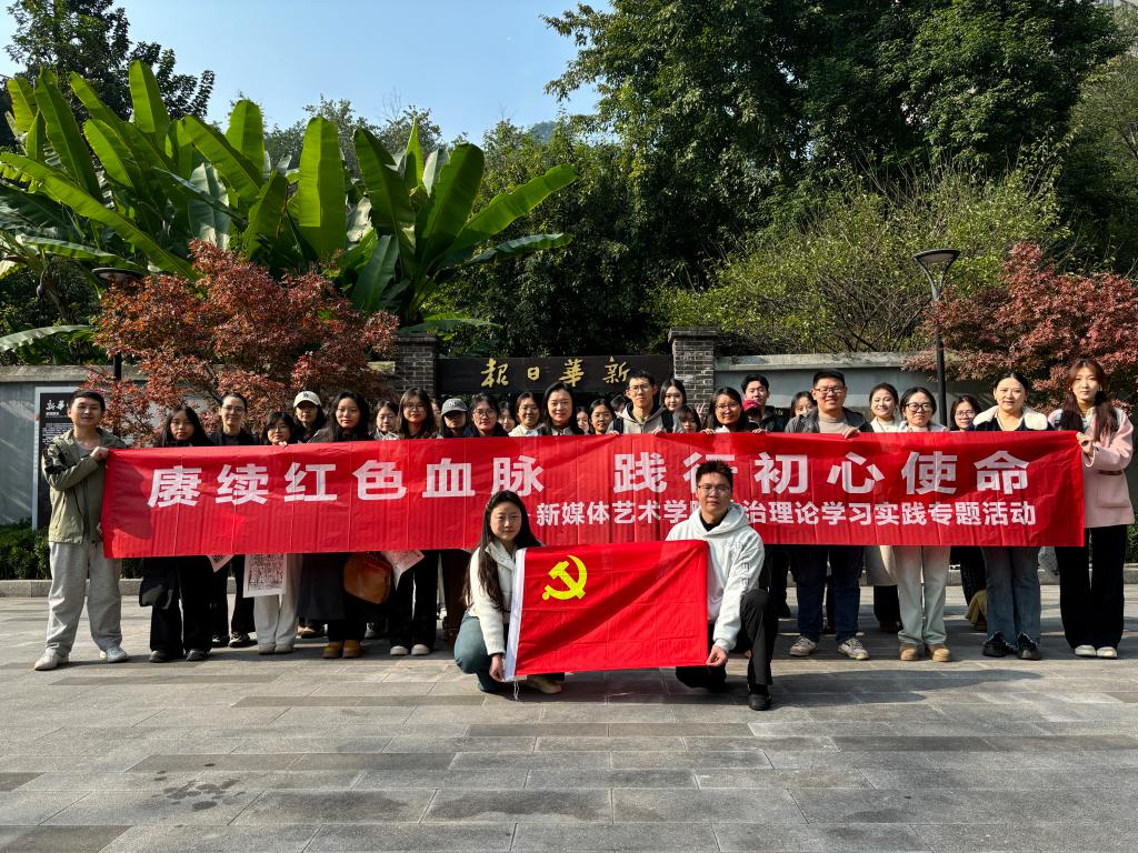 2025年11月27日,正值重庆“11·27”烈士殉难76周年纪念日,山河肃穆,英魂长存。我校新媒体艺术学院教师党支部联合学生党支部走进位于渝中区的新华日报总馆旧址,开展“赓续红色血脉,践行初心使命”政治理论学习实践专题活动。党总支书记倪倩茜带队,副院长殷骆骏楠列席。师生党员通过沉浸式参观与集中理论研读,共溯红色记忆,凝聚奋进力量。