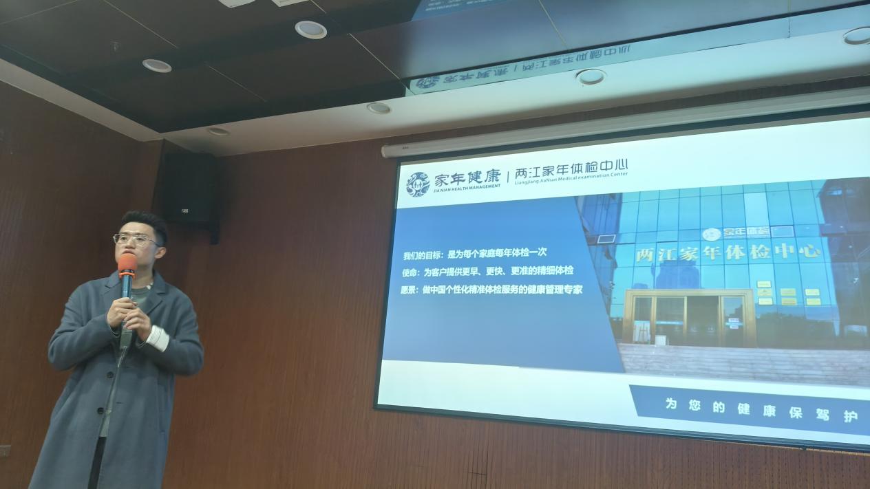 活动伊始,体检中心接待负责人尹诗诗对师生一行的到来表示热烈欢迎,围绕中心发展历程、核心业务板块、医疗设备配置及健康管理服务流程等方面进行详细介绍,重点解读了体检套餐设计、健康数据解读、慢病干预指导等核心工作的专业逻辑。随后,在工作人员的引导下,学子们分别参观了体检中心的内科、外科、影像科、检验科等功能区域,近距离了解了超声诊断设备等先进医疗仪器的操作知识,直观了解了体检前准备、检中规范操作、检后报告解读及健康干预建议的全链条服务模式。