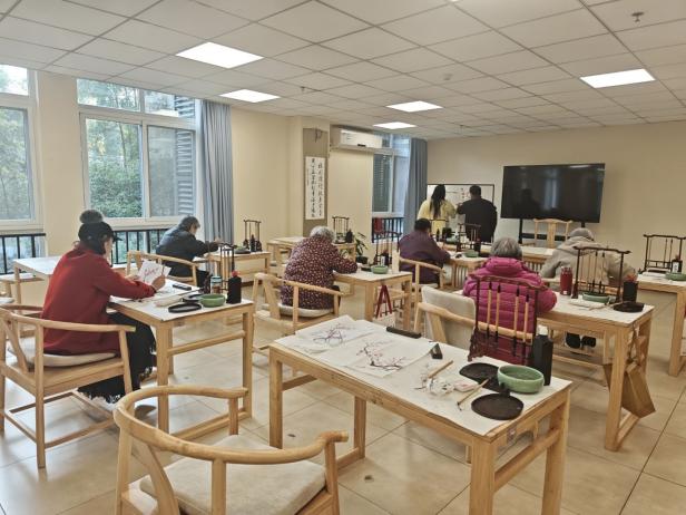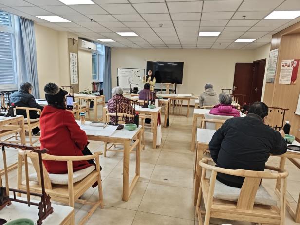 两个小时的陪伴里,志愿者的身影始终守在老人身边:帮动作慢的奶奶调整操姿,给听不清的爷爷重复科普要点,教他们练字绘画,临走前还把“健康操口诀”写在纸条上留给护理员。
