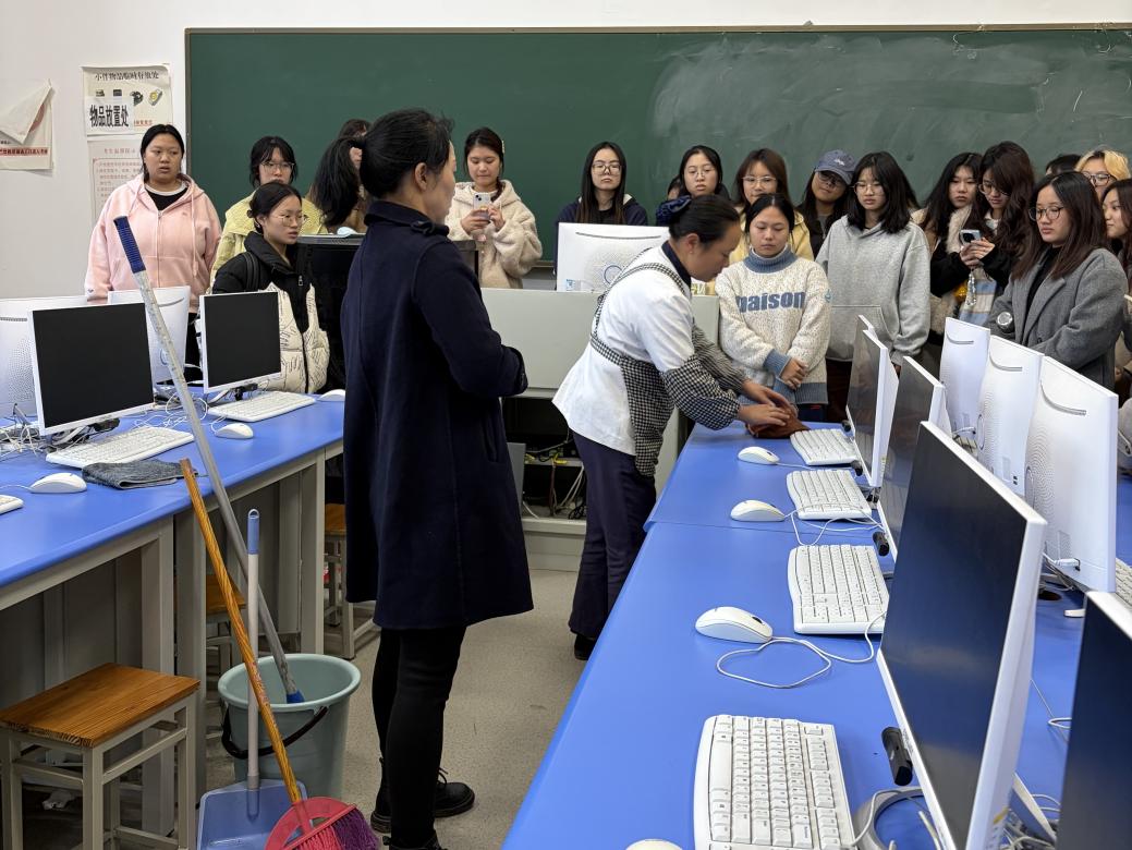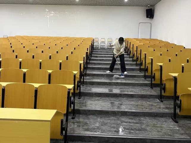为进一步提升学生助理的实操能力,11月20日,教学楼清洁主管杨老师针对岗位实操技能开展专项培训。培训中,杨主管从清洁工具的科学使用与日常保养、清洁用品的规范存放与安全使用,到人身防护要点、紧急情况处置流程等方面进行逐一细致讲解,并带领部分学生助理进行现场实操演示。学生们全程沉浸式参与,在亲身体验与实操练习中快速掌握技能要领,为高效开展岗位工作筑牢了基础。