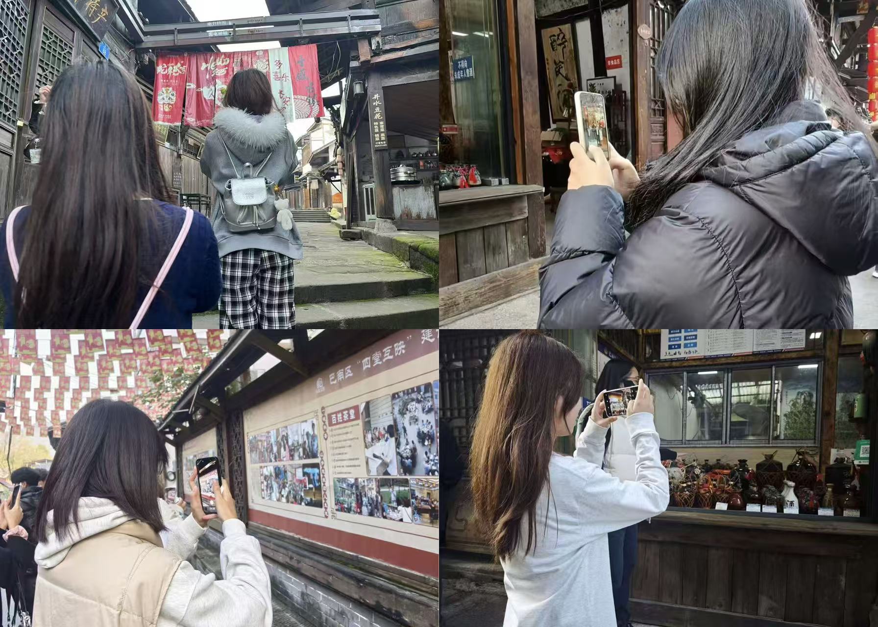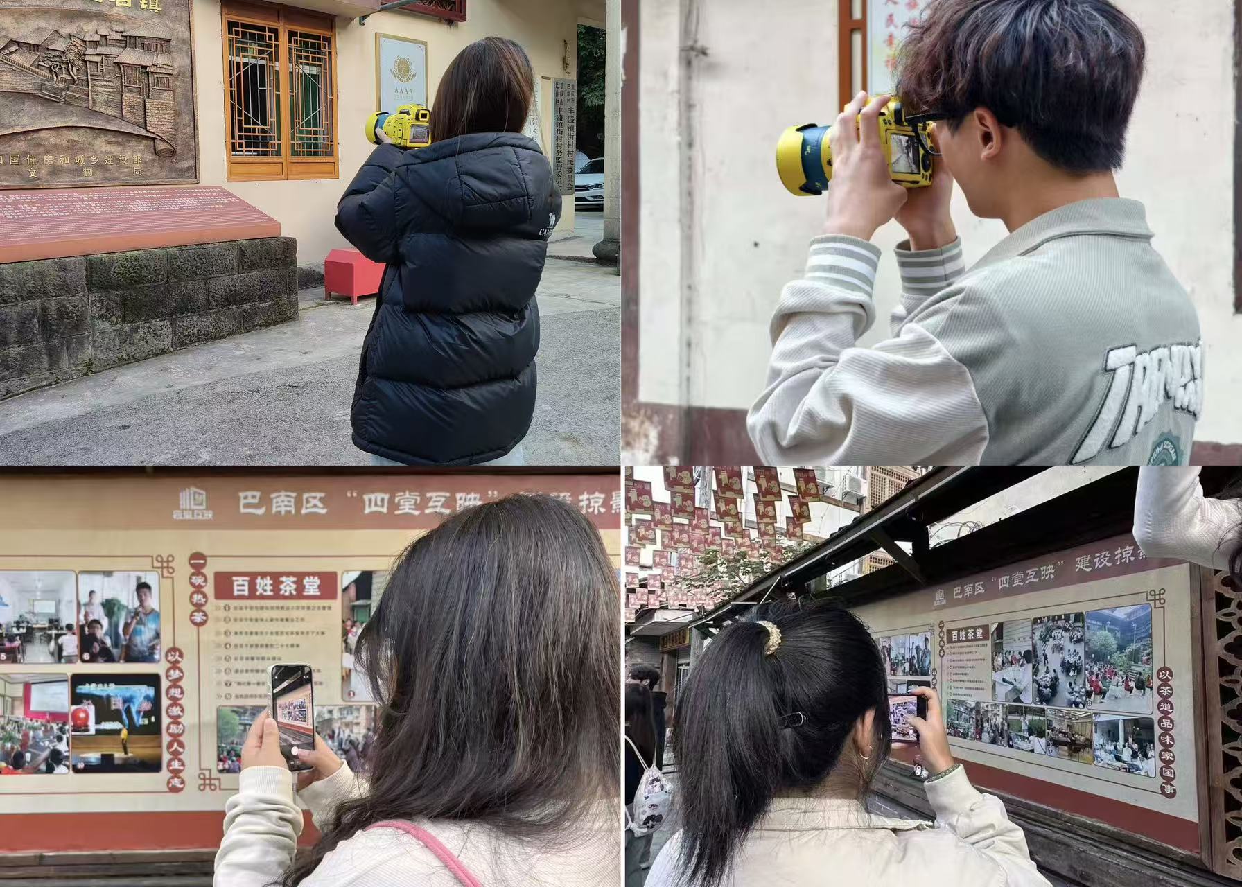 活动以“实践赋能乡村”为主线,采用“培训赋能、实地创作、评优推广”闭环流程,分“融媒体中心学习日”“丰盛镇实践日”两阶段推进,推动学生实现从理论学习者到乡村内容创作者的转化。11月25日,学生团队赴巴南区融媒体中心开展学习赋能,通过实地参访、专题培训掌握现代全媒内容生产流程,结合丰盛镇文化特色与宣传需求,组建10支创作小组,确定古镇风情、非遗技艺、特色农业等创作方向,形成“视频+图集+推文”三位一体创作方案。11月27日,实践团队深入丰盛镇古镇核心区、手工作坊、彩色森林等点位,分工开展调研访谈与素材采集,同步推进影像拍摄、图片捕捉、内容采写,精选“今日最佳”照片即时交付镇政府用于新媒体宣传,实现“当日拍摄、次日发布”高效传播。