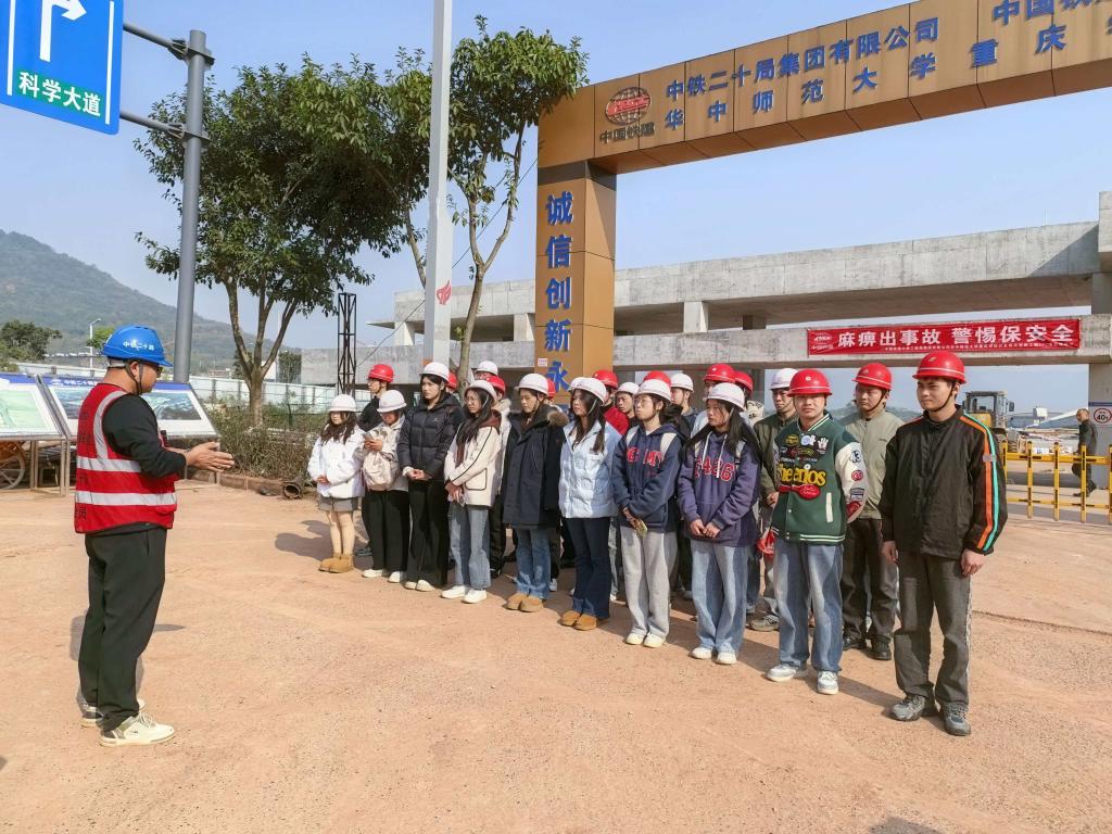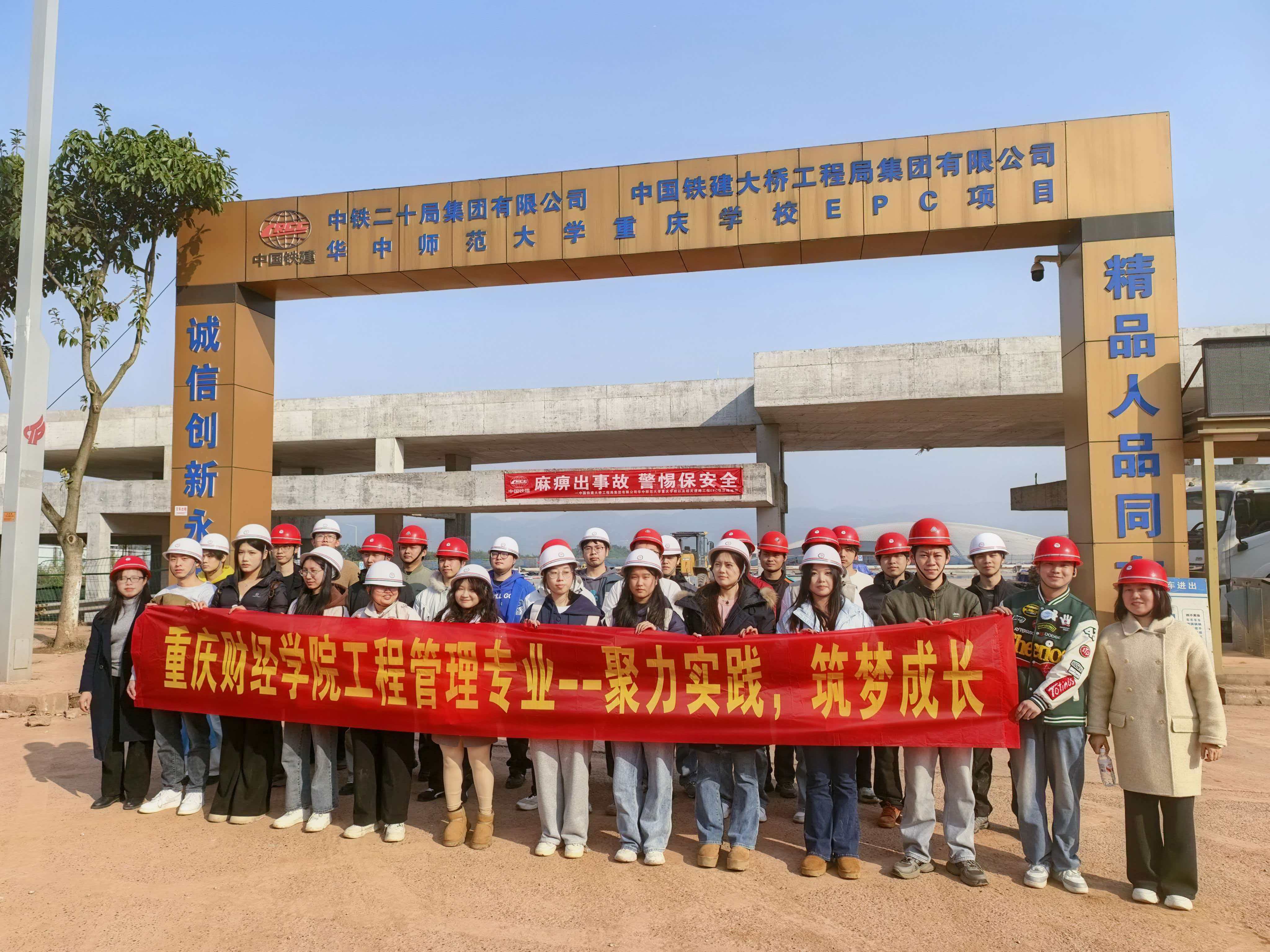 为深化工程管理专业学生对行业岗位的认知,搭建理论与实践的桥梁,2025年11月28日,重庆财经学院公共管理学院工程管理专业学生在教师的带领下,赴中国铁建大桥工程局华中师范大学(重庆校区)项目现场,开展了一场针对性极强的课程建设集中实践活动。