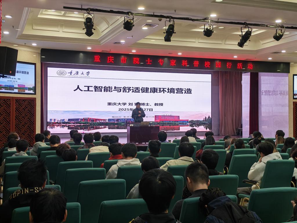 与此同时,“院士专家进校园”专题讲座同步启幕,知名学者刘猛教授以“人工智能与舒适健康环境营造”主题,带来兼具深度与温度的学术分享,为师生搭建了跨领域交流的互动桥梁,助力拓宽科创视野,激发创新思维。