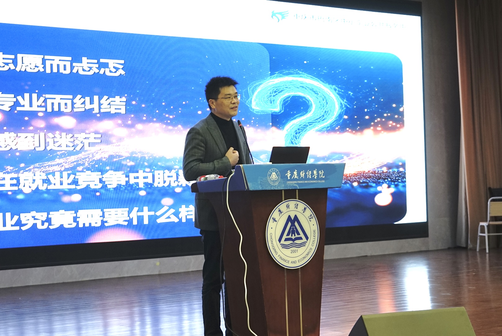 甘主任结合丰富的行业经验与企业实务案例,从当前就业形势入手,深入解读了职业规划的内在逻辑与方法路径。他提出“认知经验与反经验”的辩证思路,通过真实案例剖析就业趋势与规划策略,引导学生避免常见误区。甘主任建议,大学期间应持续进行自我“投资”:大一年段广泛探索、明确方向;大二、大三阶段扎实储备专业技能,关注宏观与行业动态,拓展跨学科知识,注重沟通、协作等软实力培养。