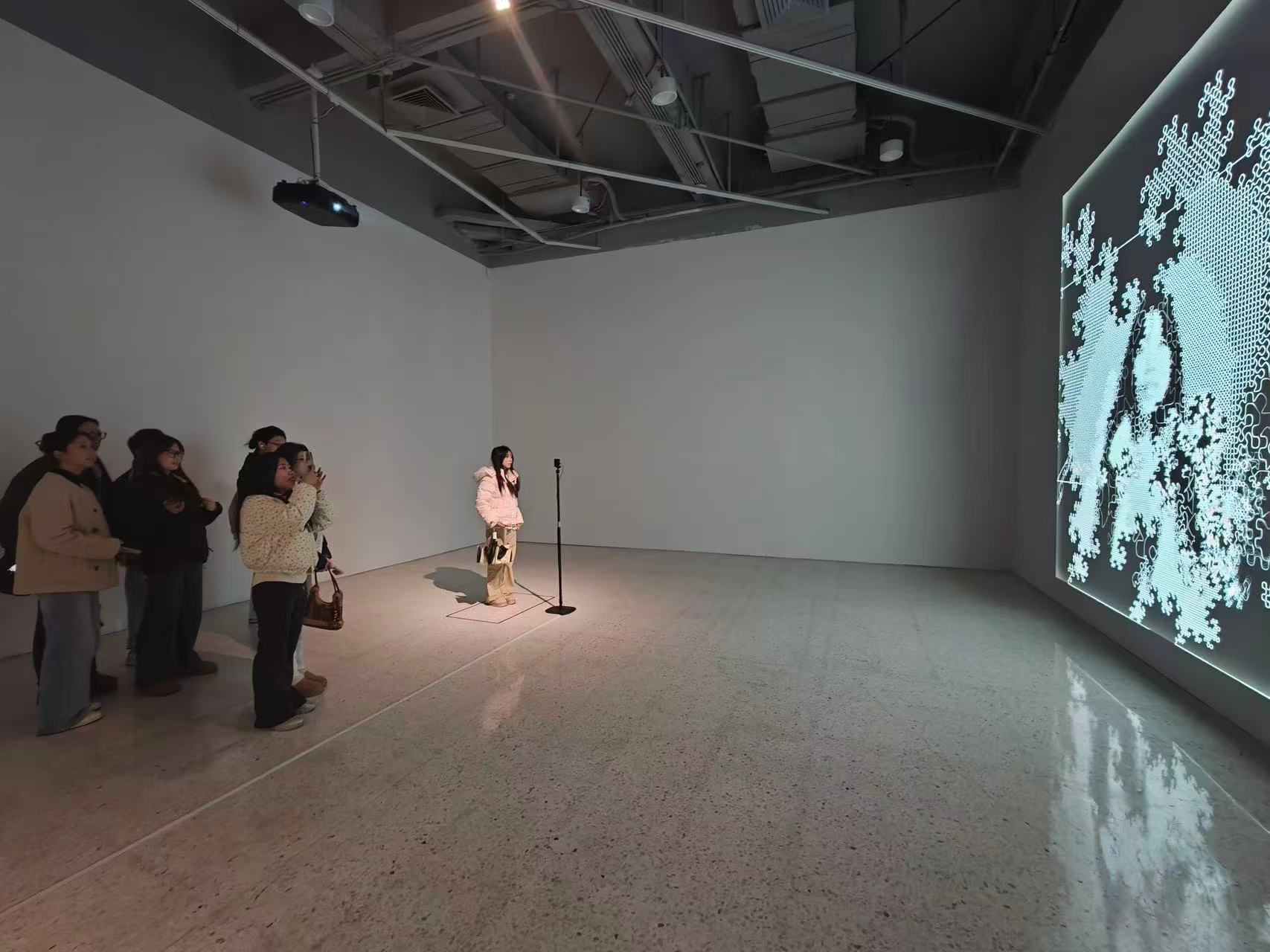 为搭建理论与实践的桥梁,锤炼学生专业核心素养,12月5日,新媒体艺术学院24级网新1-4班学子,在胡欣、梁颖、王嘉运、王瀚雪4位老师的带领下,赴重庆时代美术馆,开展《新媒体数据分析与应用》《融合新闻学》课程集中实践教学活动。本次实践依托美术馆“算法剧场科技艺术展”主题展,以沉浸式、项目化教学打破传统课堂壁垒,让艺术现场成为专业能力培养的“实景课堂”。
