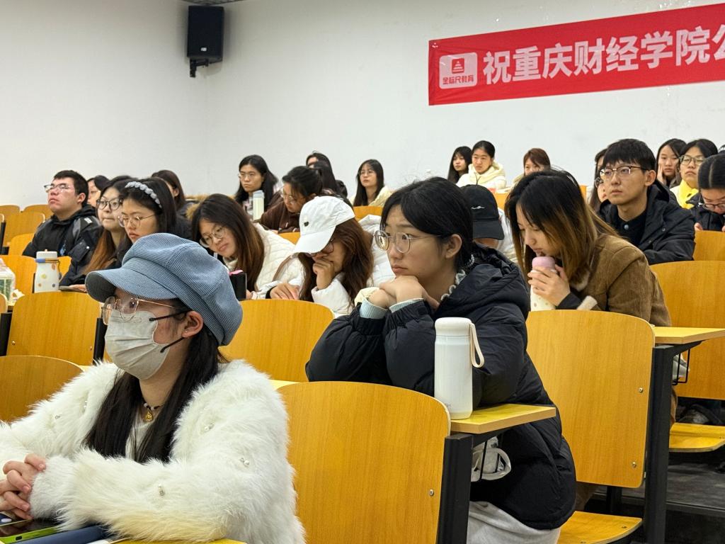 为提升学生公职就业竞争力,帮助学子系统掌握公考知识与应试技巧,12月6日,重庆财经学院第一学期公务员笔试校园提升班正式开营。本次课程由物流工程学院(国际商学院)、金融学院、软件学院联合承办,邀请到金标尺教育进行合作办学。首场开营仪式及数量关系课程吸引了约100名学子到场参与。
