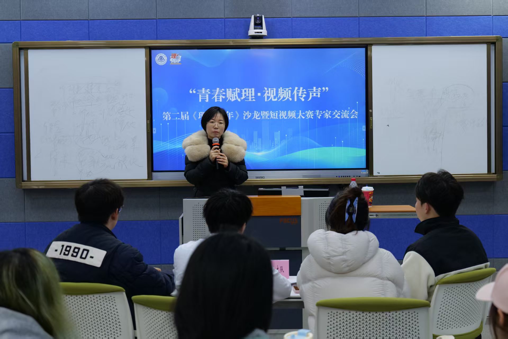 当思想的火花遇见短视频的镜头,当青春的热血融入理论的深度,就共同开启了一场关于真理与表达的对话。12月19日下午14:30,以“青春赋理,视频传声”为主题的第二届《理响青年》短视频大赛的创作实践与理论探索活动在我校教学楼1220举行。本次活动的出席嘉宾有重庆日报思想周刊主任编辑侯金亮、重庆日报思想周刊编辑徐双双、重庆日报思想周刊编辑胡渝、校党委宣传部部长姚转花、新媒体艺术学院专职教师张文博以及各学院学生代表。