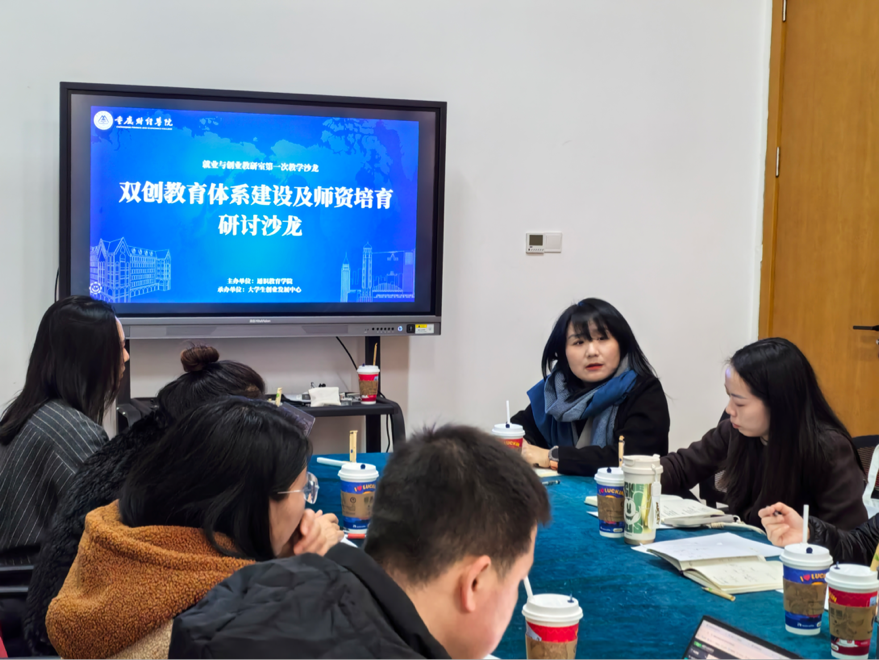 莫紫霄主任则详细介绍了学校双创教育体系的“三维支撑”架构:课程体系方面,已构建覆盖大一至大四的贯通式课程群,涵盖创业基础、专创融合主题课及精英班实训,并计划深化线下实践环节;实践体系方面,依托大学生创新创业预孵化训练项目,为学生提供从校级到市级、国家级的孵化通道;实践平台方面,整合校内外资源,搭建众创空间、校企合作空间及政府、企业、公益组织协同平台,为学生提供多元实践场景。