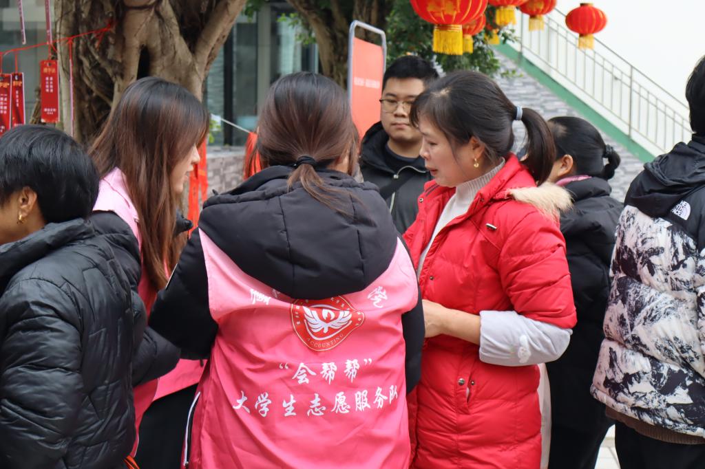 随着社区居民陆续到场,活动现场迅速升温,热闹非凡。志愿者们即刻各就各位,以饱满的精神状态、亲切热情的态度投入服务工作。写对联、猜字谜、包汤圆等一个个特色体验项目轮番上演,志愿者们耐心讲解民俗知识、细致指导操作技巧,居民们踊跃参与、乐在其中。志愿者的贴心服务与居民的热情参与相互交织、双向奔赴,让这场民俗文化节成为连接校园与社区的温情纽带,更让沉睡的传统民俗在沉浸式互动体验中真正“活”了起来,焕发出新时代的生机与活力。