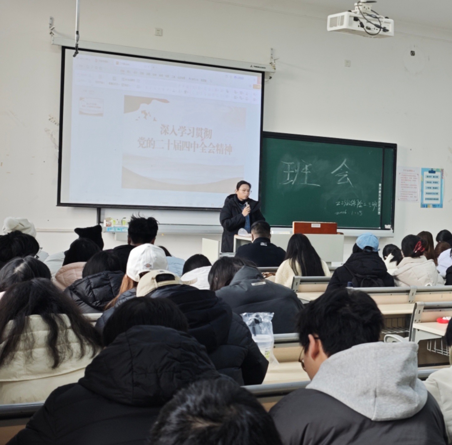 学生党支部联合学院辅导员队伍,邀请程思思、李丹、高灿、尚栋四位辅导员开展“辅导员进班级・全会精神细解读” 宣讲活动。四位辅导员结合各自负责班级的学生特点,围绕理想信念教育、学业规划指导、职业生涯发展等重点内容,将全会精神与日常思想政治教育、学风建设、就业创业指导等工作深度融合。宣讲过程中,辅导员们针对不同年级学生的核心需求,精准解读全会精神中与青年学子成长发展密切相关的部署要求,细致解答同学们关于专业发展、考研就业、社会实践、人际交往等方面的疑问,引导学生将学习贯彻全会精神转化为明确学习目标、提升综合素养的实际行动,帮助同学们在成长道路上少走弯路、稳步前行。