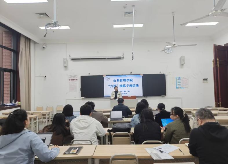 为扎实助力学校教育教学建设事业,进一步明晰学院各专业建设、课程改革与育人实践工作思路。3月23日,公共管理学院组织开展 “六说” 专项演练活动。本次演练聚焦 “专业负责人说专业、教师说课程、辅导员说育人” 三大核心环节,围绕专业建设、课程改革、育人实践开展集中研讨,以练促改、以练促建,为学校教育教学高质量发展夯实学院层面工作基础。学院李辉院长、罗婷婷书记、余天霞副院长,各系主任及参演教职工共同参与活动,演练由余天霞副院长主持。