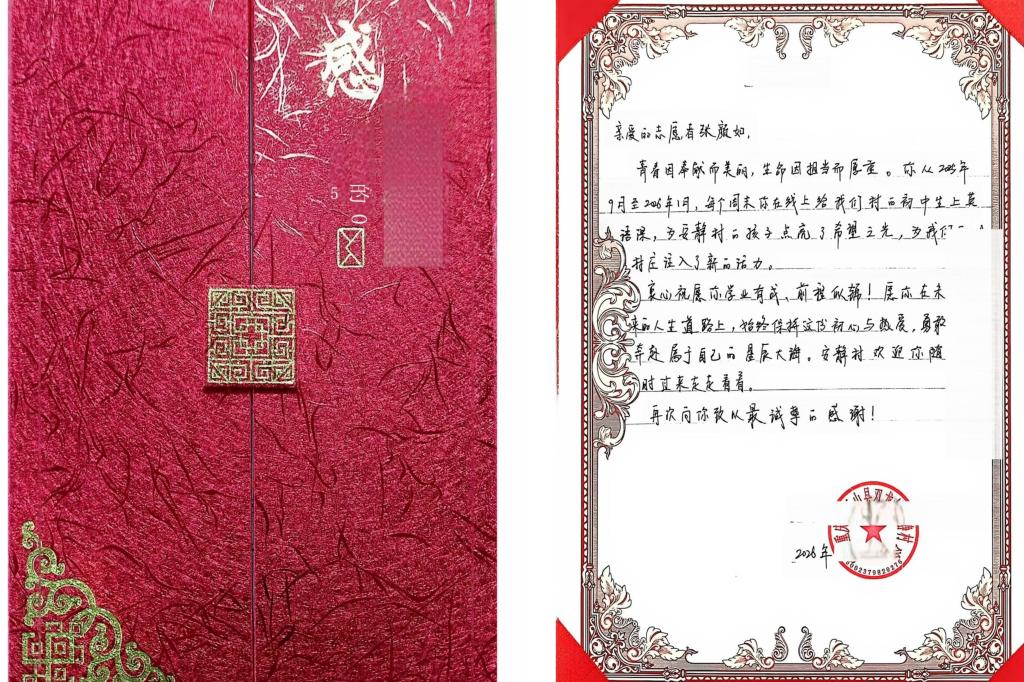过去一年,张颜如同学坚持每周六上午线上为一名初二女孩辅导英语。教学比想象中更难,隔着屏幕她只能通过让学生复述或做题来检验理解程度;坚持比热情更重要,备课等重复劳动构成了志愿服务的底色。最大的收获是学会调整期待——成绩提升并非每周可见,但学生从不爱开口到主动问问题,这些变化比分数更重要。近日,安静村村民委员会向我院发来感谢信,对张颜如同学在2025年9月至2026年1月期间开展的线上支教志愿服务表示诚挚感谢。在为期五个月的志愿教学中,她立足专业所长,用生动有趣的方式激发孩子们的学习兴趣,用坚守与陪伴为乡村孩子点亮求学之路,为安静村的发展注入了鲜活的青春活力。